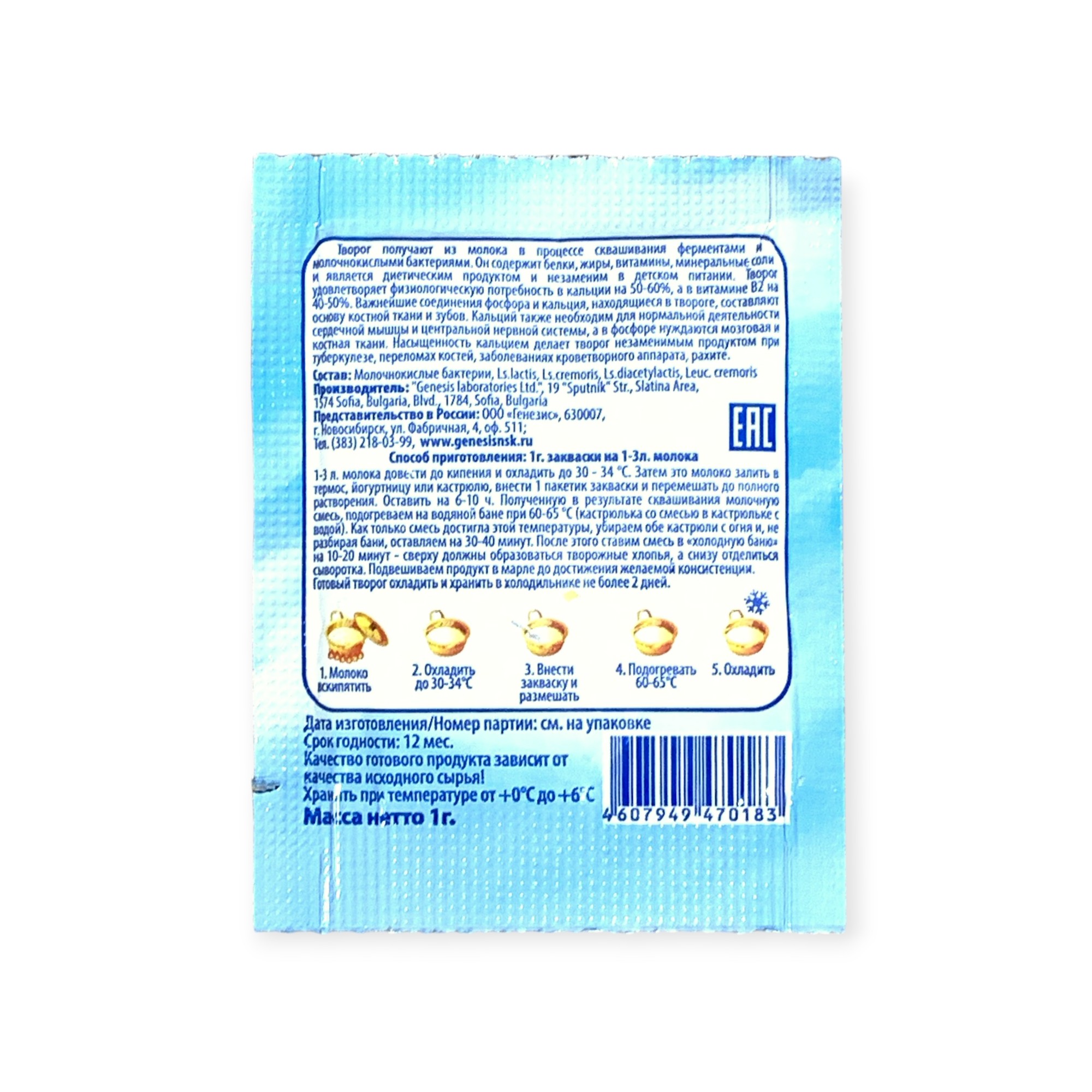 Закваска Творожок Genesis, 1 пакет от 100 руб. с доставкой. Пункт выдачи в Михайловске. Интернет магазин по сыроделию. Всё всегда в наличии.